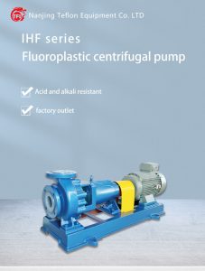 IHF fluoroplastic centrifugal pump, the flow-through parts are made of acid resistant PTFE,FEP,PFA,PVDF and other plastic materials. it is an ideal choice for industrial corrosion resistance. it has mechanical seals and couplings and is driven by motors.